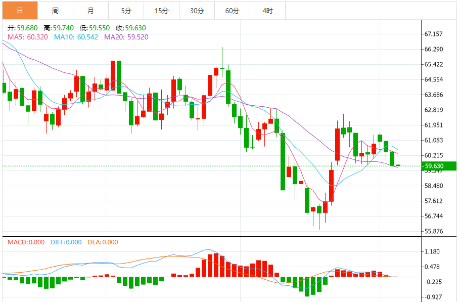 基本消息面 原油延续跌势,此前沙特阿拉伯下调其原油售价,显示供应前景不确定,同时股市下挫也对油价构成压力。WTI结算价接近每桶59美元,日内下跌约0.3%,此前已连续两个交易日走低。华尔街波动加剧,也对油价构成拖累。 相关新闻消息 沙特将12月份面向亚洲的主要原油等级价格下调至十一个月低点
