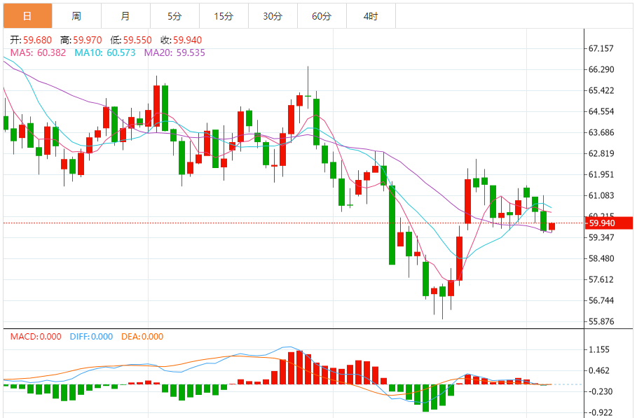基本消息面 周三,美原油交投于60.12美元/桶,延续震荡下行,消息面上,AI公布数据显示,最新一周美国原油库存骤降650万桶,远高于市场预期的约130万桶。 相关新闻消息 这一数据表明,美国国内需求有所回升,或者出口增加,同时也反映出炼厂进入季节性扩产阶段,对原油的消耗明显加快。 对