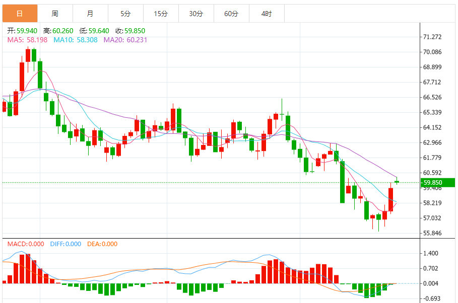 基本消息面 周四(10月23日),美原油价格交投于59.800美元/桶附近,涨幅为2.22%。 当前市场焦点在于贸易担忧情绪有所缓和,加上库存变化改善,使油价短线走强。投资者静待IA库存数据,希望获得更多指引。 此前,美国方面释放出缓和信号,令避险情绪下降。美国总统特朗普近期表示,高关税并不可持