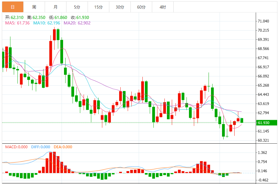 基本消息面 周四(10月9日),美原油价格交投于61.930美元/桶附近,跌幅为0.98%。 油价周三创一周新高,交易商预计乌克兰和平协议缺乏进展将使对俄罗斯的制裁继续有效,同时报告显示美国石油消费增长。美国原油期货价格在周三亚盘时段延续反弹,受美国石油协会(AI)公布的“一增两降”库存报告提振。