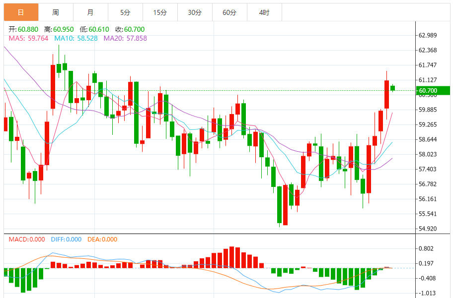 基本消息面 周三,西德克萨斯中质原油(WTI)价格交投于每桶60.70美元附近刷新近两个月高位。油价反弹的主要动力来自中东地缘局势再度紧张,市场对潜在供应中断风险的担忧明显升温。 相关新闻消息 当前,伊朗局势仍是油市关注的核心。随着伊朗国内不稳定因素加剧,以及德黑兰与华盛顿、特拉维夫之