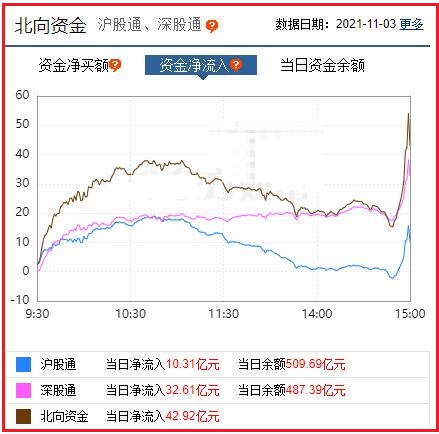 截至收盘: 北向资金净流入42.92亿元,其中沪股通资金净流入10.31亿元,深股通资金净流入32.61亿元。
