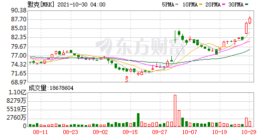 十月初,默沙东表示,对于可能发展为重症、可能需要住院治疗的成年患者,口服抗新冠病毒药物molnupiravir能够将此类患者住院的风险降低了一半。此后,该药物抑制收到市场的密切关注。