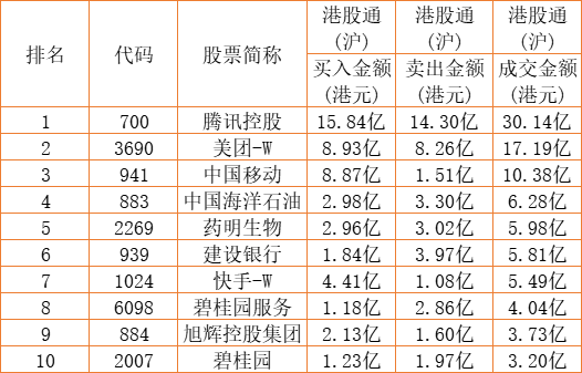 亚汇网实时数据统计:截至1月4日收盘,腾讯控股、美团-W、中国移动位居港股通(沪)成交前三,腾讯控股、美团-W、快手-W位居股通(深)成交前三。