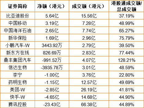 亚汇网1月12日港股通数据统计显示:比亚迪(002594)股份净买入额居首,达5.64亿港元,腾讯控股净卖出额居第一位。(亚汇网编辑:陌尘)