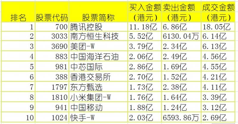 港股通(沪)买卖前十股(单位:港元):