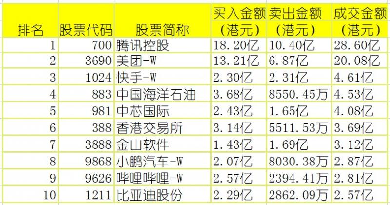 亚汇网3月29日港股通数据统计显示:腾讯控股成交额居首,达28.60亿港元
