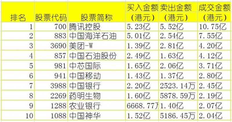 亚汇网5月4日港股通数据统计显示:恒生中国企业成交额居首,达10.75亿港元