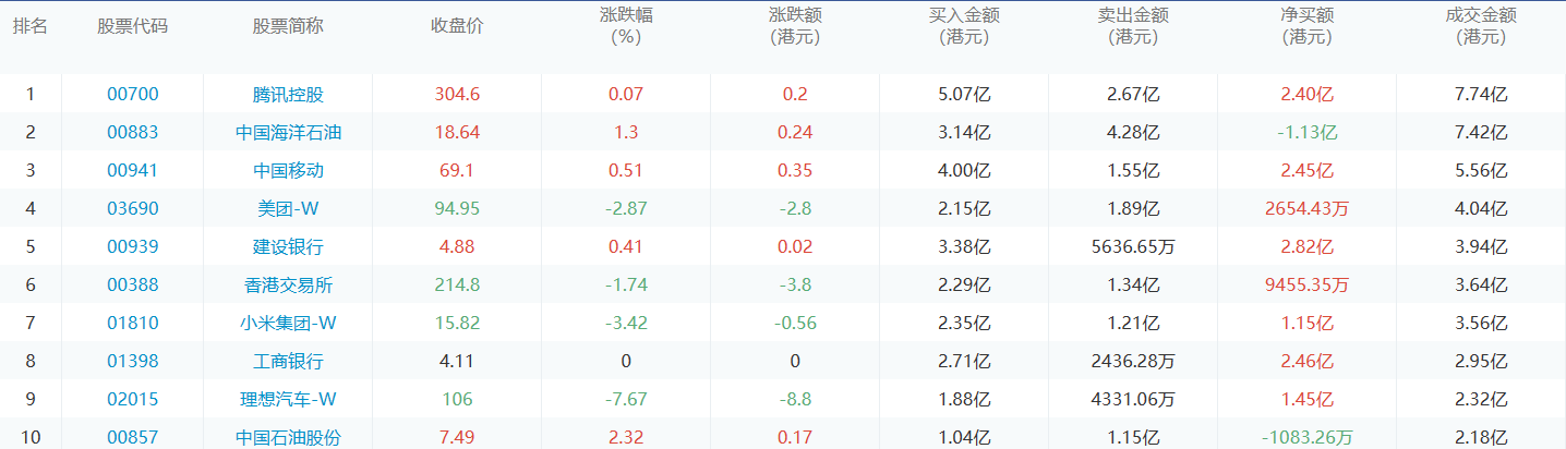 亚汇网4月19日港股通数据统计显示:腾讯控股净买入额居首,达5.07亿港元,中国海洋石油净卖出额居第一位。
