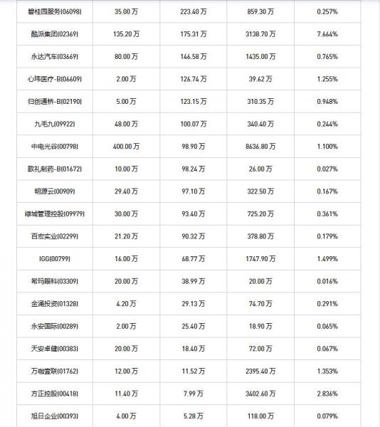 石四药集团(02005)、方正控股(00418)、摩比发展(00947)、天福(06868)、永安国际(00289)、万咖壹联(01762)、VITASOY INT'L(00345)、腾讯控股(00700)、固生堂(02273)、明源云(00909)、百宏实业(02299)、希玛眼科(03309)、归创通桥-B(02190)、力鸿检验(01586)、碧桂园服务(06098)、金涌投资(01328)、IGG(00799)、酷派集团(02369)、津上机床中国(01651)、天安卓健(00383)、联易融科技-W(09959)、旭日企业(00393)、首佳科技(00103)、歌礼制药-B(01672)、和铂医药-B(02142)、小米集团-W(01810)、美亨实业(01897)、绿城管理控股(09979)、首程控股(00697)、诺诚健华(09969)、九毛九(09922)、锅圈(02517)、永达汽车(03669)、心玮医疗-B(06609)、云工场(N23027)、中电光谷(00798)、百胜中国(09987)、贝壳-W(02423)、百胜中国(09987)、中通快递-W(02057)于2025年10月10日进行了回购。其中,回购金额最大的为腾讯控股(00700),回购数量83.90 万,回购金额5.50 亿元。