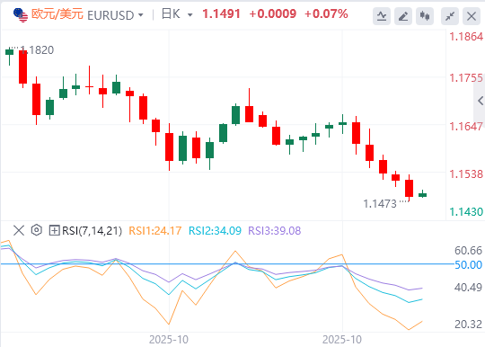 周一亚盘,美元指数震荡于99.66附近,美元上周五承压下行,兑欧元和日元均录得周跌幅,投资者在美联储的鹰派立场与美国经济隐忧之间艰难权衡。由于联邦政府持续停摆,原定于上周五发布的10月就业报告未能如期公布,导致市场缺乏关键经济数据参考,美债收益率随之小幅走低。本周投资者需要继续关注美联储官员的讲话。 主