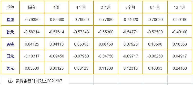 6月7日伦敦银行同业拆借利率: