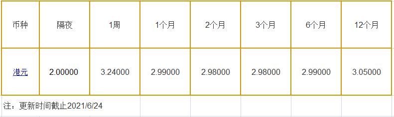 6月24日香港银行间同业拆借利率港币: