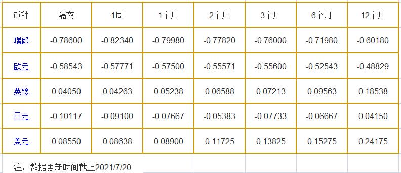 7月20日伦敦银行同业拆借利率: