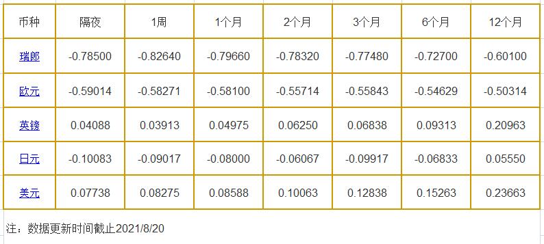 隔夜LIBOR:瑞郎报-0.78500%,欧元报-0.59014%,英镑报0.04088%,日元报-0.10083%,美元报0.07738%;