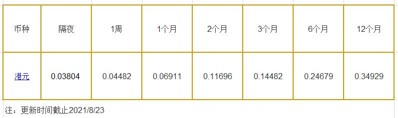 香港银行同业拆放利率HIBOR(Hongkong InterBank Offered Rate),指香港货币市场上,银行与银行之间的一年期以下的短期资金借贷利率,是从伦敦同业拆借利率(LIBOR)变化出来的。