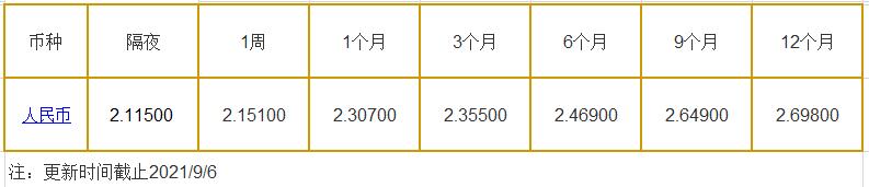 9月6日中国银行间同业拆借利率人民币: