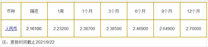 9月22日中国银行间同业拆借利率人民币:
