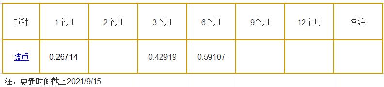 9月15日新加坡银行间同业拆借利率坡币: