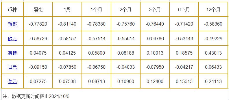 10月6日伦敦银行同业拆借利率: