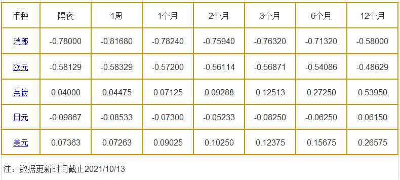 10月13日伦敦银行同业拆借利率: