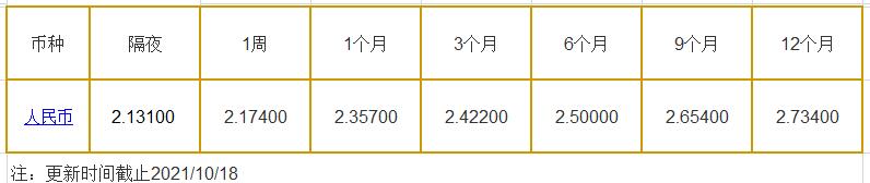 10月18日中国银行间同业拆借利率人民币: