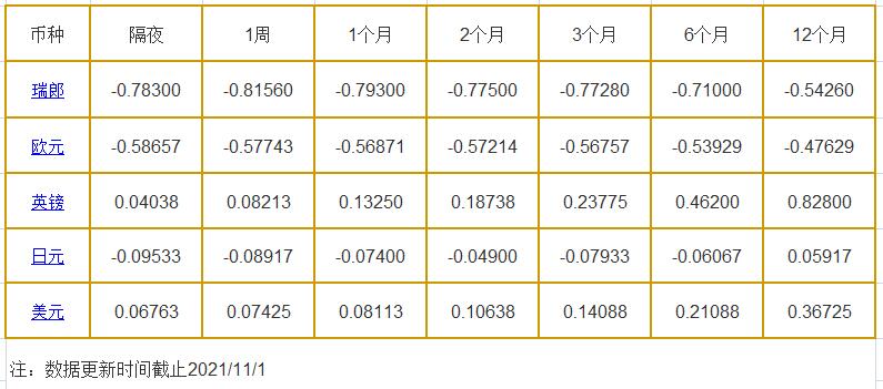 11月1日伦敦银行同业拆借利率:
