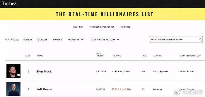 今年上半年,全球富豪榜单相继出炉,综合整体情况来看,目前位于全球首富的是特斯拉创始人埃隆·马斯克以2190亿美元的资产成功登上世界首富的宝座。 排名第二位的是亚马逊创始人杰夫·贝索斯,资产为1710亿美元。位于第三位的是LV奢侈品集团领导者伯纳德·阿尔诺,总资产为1580亿美元。而大家熟知的比尔盖茨以及