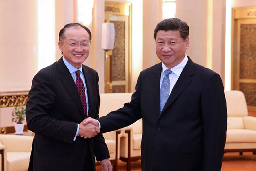 世界银行行长金墉8日在北京的行程可以用"高大上"来形容。他在一天之内会见了中国国家主席习近平、国务院总理李克强以及国务院副总理刘延东。当他出现在位于北京东部CBD 国贸写字楼的发布会上时,显得既疲惫又从容。