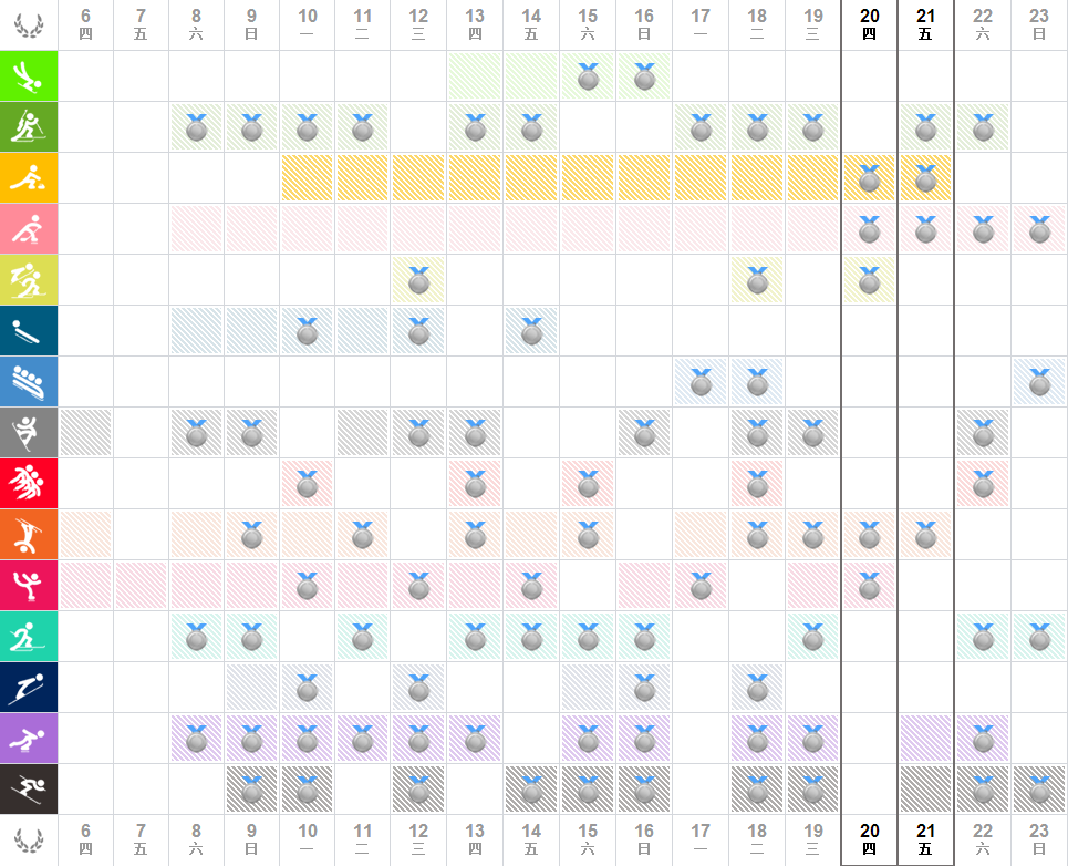 索契冬奥会节目赛程